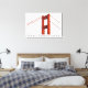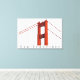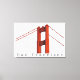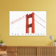 Ett närfoto fångar det ikoniska röda torn i Golden Grind Bridge. Tornens konstruktion är synlig, med lodräts stöd och vågräts strålar. Brons upphängningskablar, av många tunna trådar, sträcker sig från torn och skapar mönster i lodrät linjer mot den vita bakgrunden.