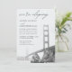 Fånga skönheten hos San Francisco och inbjudan dina gäster i stil med den svarta och vita guldbron över elopement. Framsidan visar ett bryggfoto som anger perfektens tonläge för bröllopsdagen. Anpassa texten så att den blir din egen och ange Zazzle-designen verktyg för ytterligare anpassning. Jämför pappra typer om du vill välja favoriter och kombinera dem med koordinerande information, omprövning och OSA av höljeskort.