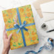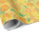 En chic Giftwrap, med en mönster av gyllene daffodils på mörk grönt bakgrund, från en handmålad vattenfärgsdesign av Judy Adamson.