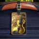 Bilden är en fiol i Vintagen Guld på en Guld-musikbakgrund.