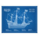 Golden Hind - Frakt Blueprint Plans ABD Fototryck