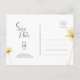 Golden Hour Grace Photo Blommigt Bröllop spara datum Postcard. Säg till kärlek med "The Golden Hour Grace" - en samling minimalistisk blommigt och elegant foto Spara postkorten för datum. Med en ny färg-palett som håller i sig och som håller på att bli en ny årspalett, visar vykorten en känslig blandning av varma gulter, som påminner om buttercups och solljus, och skapar ett verkligt oförglömligt första intryck. De här vykorten är utskrivna på lyxaktiga kardstockar och har en förfinad och underskattad elegans. Ett minnesvärt foto ger halva framsidan, medan elegant blommigt typsnitt slutför den här omhuldade keepsaken.