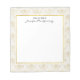 Ett anteckningsblock med en elegant mönster med guld färgad humla i ett upprepande mönster på en gräddbaksida i färgaden.