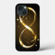 Guld, oändlig smyckessymbol med guld-stjärnor på svart bakgrund. Utformning med guld stjärna.