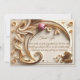 The 'Golden Ivory Baroque Asymmetric Crescent Wedding' Thank You Card is a refined expression of gratitude, adding a layer of romantic symbolism and organic beauty. Set against a warm ivory or pearl-toned background, the design unfolds with delicate Baroque scrollwork that frames the card like an antique heirloom. The design features soft gold adornment of delicate mulberry colored tulip flower in half-moon crescent, golden floral swirls. The text uses modern typography and can be easily personalized.
