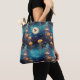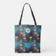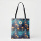 Den magiska designen har guld och maneter av orange som flyter i magiska teal och blått hav. Jellyfisken har en belyst effekt på djuphavets vattenfärger. Ett monogram visas i en mörk blått på en cirkel av guldfärgad orange. Båda sidor ser likadana ut på roligten till väskan till stranden, till gymmet, till skolan eller till nästa äventyr!