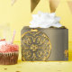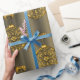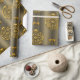 En elegant och en dekorativ julomslutning papper med en mönster av gyllene julbalkar med guld krukor på brons bakgrund.
