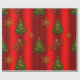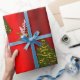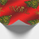 Just denna elegant och traditionella julomslutning har ett mönster av gammaldags Julgranar med baubles och tinsel, omgivet av guld julstjärnor (eller snöflingor). Mellan dem finns "Noel" i ord i guld med fler Juldekorationer och gyllene stjärnor i själva ord. Just denna snyggt och denna lyxröda julomslutning papper kommer säkert att imponera på den som har turen att få julklappar i år.
