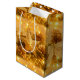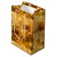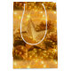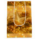 Elegant julklapp med en vacker guldstjärnig ornament, buk, pärlor, gräs-koner och mousserande ljus.