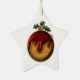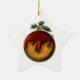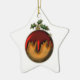 En söt, stjärnformad julprydnad för Julgran med en traditionell plommonpudding av rött och guld, med en sprit av grå sitta överst.