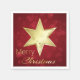 En gyllene stjärna med snöflingor på en röd bakgrunds och God jul kalligrafitext.