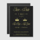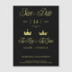 Queen & King crowns in fake gold for a wedding with a bride and a groom who want a glamorous and elegant wedding. Sober design on black background.