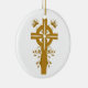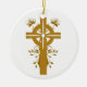 En vacker guldfärgad blommigt kor runt keramiskt prydnadsämne. Med ett vackert gyllene kor med blommigt på vit bakgrund, på båda sidor. Ett underbart presentobjekt för familj och vänner, medlemmar av din kyrka, präst, vem som helst i din andlig eller religiösa. Det är också en underbar tjänst för en första Heligans gemenskap, eller för ett heligt party firande. Den här designen finns också tillgänglig i vår butik för att matcha inbjudningar, frimärke, bordsnummer kort, säteskort, presentartiklar med mera! Besök vår butik för andra artiklar från religiösa, andlig och party firande.