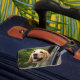 Söndag kör genom land, på träd täckt smuts med arbetshämtning. Hund har sitt huvud utåt och ser ut som om lycklig ska åka och verkar le.