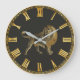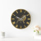 Dramatisk och elegant klockdesign har lejon etsning i mitten av guld med latinska siffror ansikte på svart bakgrund