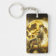 Stor glödande varg med gyllene blixtnedslag och skarp design med gyllene fullt måne.