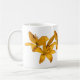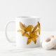 Mugg har en enkel design med sex gyllene gult asiatiska liljor mot en rent vit bakgrund.