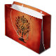 Golden Livets träd med Red Gemstones - Andlig konsthjälp på orangens bakgrund. Ett magnifikt gyllene livets träd med en böjd mörk och serpentin grenar. Röda stenar vid spetsen ge vid träd är en lyxig aura, medan tre dekorativa pendanter i blått, gult och rött ökar harmonin. Bakgrunden till den texturerade orangen understryker andlig-symbolen styrka, tillväxt och energi.