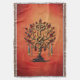 Golden Livets träd med Red Gemstones - Andlig konsthjälp på orangens bakgrund. Ett magnifikt gyllene livets träd med en böjd mörk och serpentin grenar. Röda stenar vid spetsen ge vid träd är en lyxig aura, medan tre dekorativa pendanter i blått, gult och rött ökar harmonin. Bakgrunden till den texturerade orangen understryker andlig-symbolen styrka, tillväxt och energi.