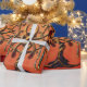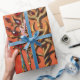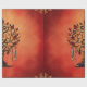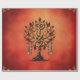 Golden Livets träd med Red Gemstones - Andlig konsthjälp på orangens bakgrund. Ett magnifikt gyllene livets träd med en böjd mörk och serpentin grenar. Röda stenar vid spetsen ge vid träd är en lyxig aura, medan tre dekorativa pendanter i blått, gult och rött ökar harmonin. Bakgrunden till den texturerade orangen understryker andlig-symbolen styrka, tillväxt och energi.