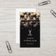Den enkla utformningen av lodrät för hårstilistorna eller salonger och eleganten har en modern vit text på en svart bakgrund som är försedd med korkade strängar av guld-strängen ljus med oskarp bokeffekt. Anpassa med två linjer anpassningsbar på framsidan under ett par stilisteskon och lägg till kontaktinformationen för fullt på baksidan.