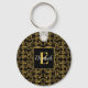 Golden löv och svart lyx | Monogramanpassningsbar Nyckelring