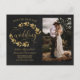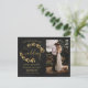 Golden Löv på Black Photo Bröllop spara datum Meddelande Vykort