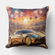 Digital art of a golden vehicle in a desert place with fireworks and balloons standing out in the landscape sky.