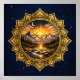Golden Mandala Mountain Sunset Cosmic Boho Nature Poster