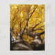 Tittar upp det gamla mapelet träd i kanopin guld löv på en solig höstdag.