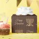 Här har vi en papper som innehåller en gyllene menorah och ord Lycklig Hanukkah på en ljusbrun och mörk brun lodrät som är strimlad bakgrund. Detta papper finns i många-storlekar och är en matchning mot andra inslagna , vävnadspapper, presentpåsar och ett gratulationskort. Det här är en perfekt till dina gåvor den här julhelgen.