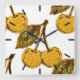 Golden Metallic Cherries Pattern Fyrkantig Klocka