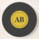 Utformning av personligen med runda golden-etiketter och anpassningsbar-textmallar för monogrammet, på svart bakgrund