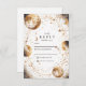 A luminous celestial wedding design glowing in soft white and metallic gold. This invitation features ornate swirling filigree, crescent moons, scattered stars, and shimmering celestial accents that create an ethereal, dream-filled atmosphere. The refined Art Nouveau frame adds a luxurious vintage touch, making it ideal for couples who want a romantic, moonlit, and enchanting celebration aesthetic.