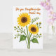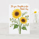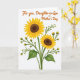 This card features a bright cluster of sunflowers on a white background, with two large blossoms leading the scene in golden-yellow petals around deep brown centers. Slender green stems and gently curved leaves weave through smaller buds, creating a sense of growing closeness, like a friendly arm-in-arm moment in floral form ❤️. Soft shading along the petals and foliage suggests a mild light source and adds depth without crowding the open space. Near the top, the message “For you, Daughter-in-Law on Mother’s Day” sits centered above the flowers in warm orange lettering. The text stands out clearly against the white area, leaving the blooms to feel like they’re lifting up toward the words. Yellow buds tucked between the leaves bring a tender, caring rhythm to the arrangement, as if each stem is leaning in to support the others 🌼. The two main sunflowers sit slightly offset, with layered petals fanning outward and a few small buds clustered along the right side.