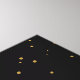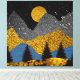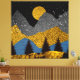 Abstraktens landskapsplanering i fet guld, svart och blå med månghund och fåglar.