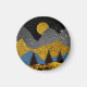 Abstraktens landskapsplanering i fet guld, svart och blå med månghund och fåglar.