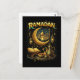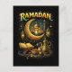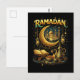 An ornate and luminous Ramadan scene glows with crescent moons, lanterns, sacred texts, and quiet devotion beneath a star-filled sky.