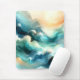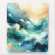 Soft flowing waves in rich teal and turquoise tones blend seamlessly with warm golden light.