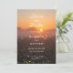 This rustic and romantic design features a golden-hour nature scene with a sprawling tree and magical fireflies—an ideal choice for an outdoor country wedding or a romantic bohemian fall celebration. The warm orange and yellow sunset backdrop creates an atmosphere of timeless romance and natural beauty. Elegant modern calligraphy adds a refined touch, beautifully contrasting with the vintage, woodsy aesthetic. This design is perfect for couples planning a forest wedding, barn wedding, woodland ceremony, or any romantic outdoor celebration.