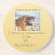 This soft modern Osteosarcoma tribute design is created especially for a round sandstone coaster, offering a warm and comforting way to honor a beloved pet. A centered square photo rests gently within the circular layout, framed by a soft golden glow that blends into the warm yellow gradient background. Above the photo, a simple, heartfelt memorial phrase adds quiet emotional depth. Beneath it, a clean Osteosarcoma awareness line acknowledges the strength and courage shown through this aggressive bone cancer. Your pet’s name and nickname appear below in modern, understated text with a small paw print for a tender personal touch. A soft yellow awareness ribbon sits near the lower curve of the coaster, adding a subtle symbol of hope and remembrance.