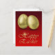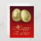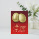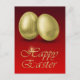 Glamourous illustration med två gyllene påskägg på röd bakgrund.