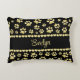 Golden Paw Prints on Black with Custom Name Prydnadskudde