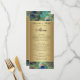 Menykort för bröllop.. Elegant och förfinad botten av påsatt fågelfjäder i rik färg av royal blå, koppar guld och teal emerald grönt. Fågeln är en statsägd fågel med prydnadsfjädrar och den gör en vacker visning för en sommar bröllop eller någon tillfälle-metallisk tittar guld-gradient tillför en aning glamor och förfining.