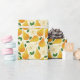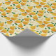 Ett mönster av vibrerande guldbruna päron i skuggor av gult, orange och guld, med djupa löv av grönt. Vissa päron halveras för att visa juikens insida och frön. Mönster är rent och modernt med förenklade fruktbilder parade med vattenfärgen struktur och en begränsad palett färg.