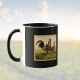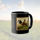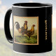 The design appears on a background of black, bordered on gold, with your or your recipent's name in gold letters in between the two images on the sides. The roosters appear on both sides of the mug, and this verson has a black handle and black interior, but other cup and mug options are available. This vintage artwork is public domain work from the 1921 Book of poultry, and is made available via the Biodiversity Heritage Library on the Flickr Commons.