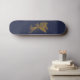 en dekorativ golden-linjärkonstruktion av en stigning foenix-fågel på en mörk blått skateboard för färgad