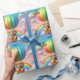 Golden Puppy Boy's Namn Birthday Balloon Rainbow Wrapping Papper