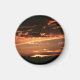 Den här magneten kommer att se underbar ut på ett kylskåp eller till och med i ett sovrum.Med ett vackert solnedgång och strålarna från sol sjunker ut genom de svarta och vita molnen. Himlar färg är rött, guld, orange över ett landskap med mycket träd. Finns i runda eller kvadratiska.