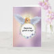 En söt rund vattenfärgsutandning av faux-guld med delikat blått och vitt vattenfärgat blommor har ansiktet av en hund för att hämta golden där man tittar över det övre kant. hund har en lång och utökad ängel vinge och en faux guld halo och tittar på formuleringen. Gud har vunnit en ängel mot en himmelskare rosa och blå himmel. Insidan lyder: "Ditt liv var en välsignelse, ditt minne en skatt, du är älskad bortom ord och missad bortom all gräns. Jag håller dig i mitt hjärta tills vi träffas igen.